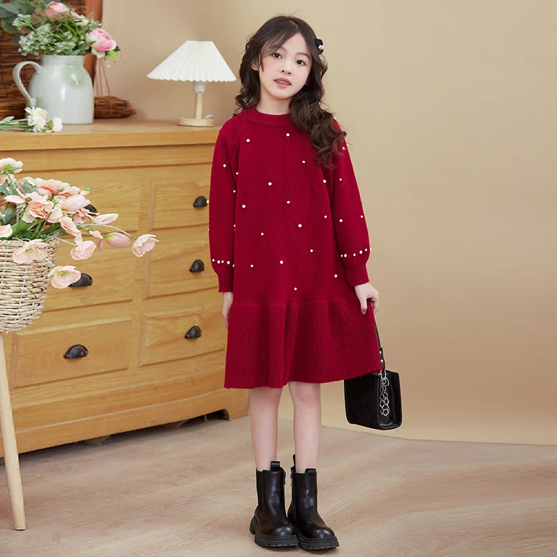 2025 Herbst Winter Teenager Mädchen Kinder Strickpullover Kleider Prinzessin Kleidung Neujahr C...