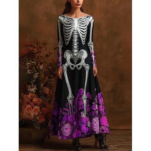 Damen Skelett Maxi Kleid Schlüpfer Kleid A Linie Kleid Lä...