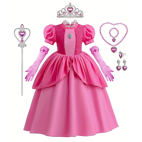 Prinzessin Peach Kleid Handschuhe Krone Musterkleid Cosplay-Kost&uu...