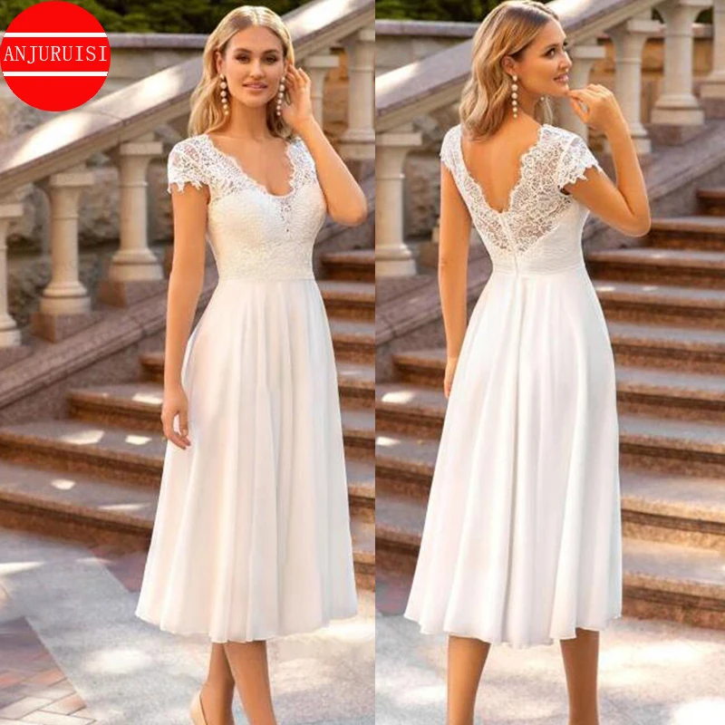 Cap Sleeve Kurze Hochzeit Kleider Für Frauen 2023 Braut Kleid Elegante Frankreich Spitze Vestid...