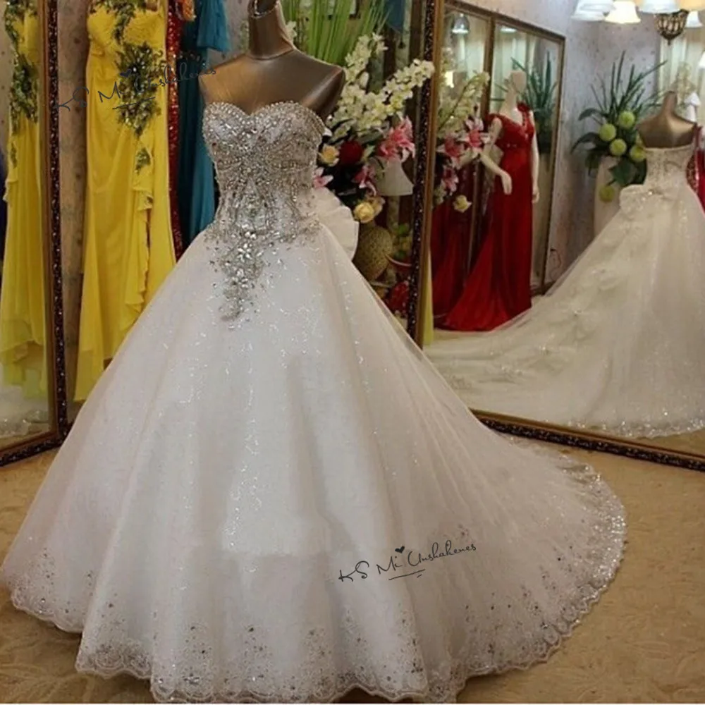 Arabischen Real Luxury Hochzeit Kleid Kristalle Robe de Mariage Lange Zug Braut Kleider 2020 Bogen B...