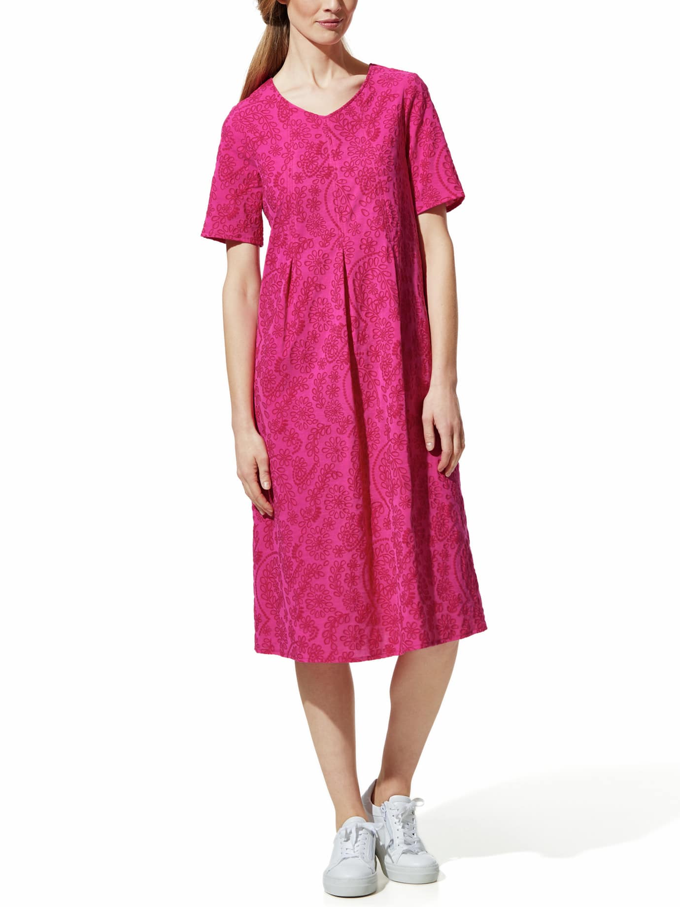 Hat ein Ticket für Ihren Urlaubskoffer: das modische Jacquardkleid mit eingewebtem Blumenmuster...