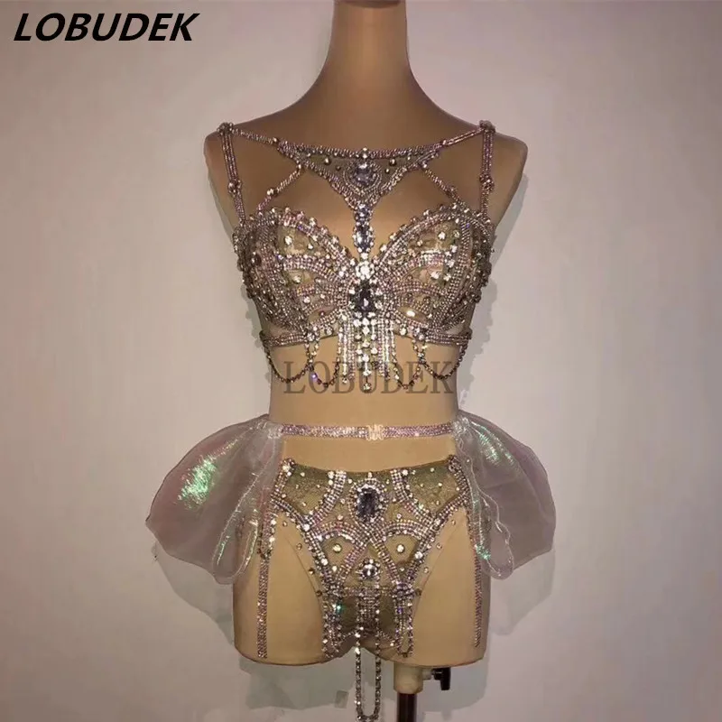 Glänzende Strass Bikini Pole Dance Kostüm Bar Nachtclub Party Show Rave Outfits Sexy DJ Go...