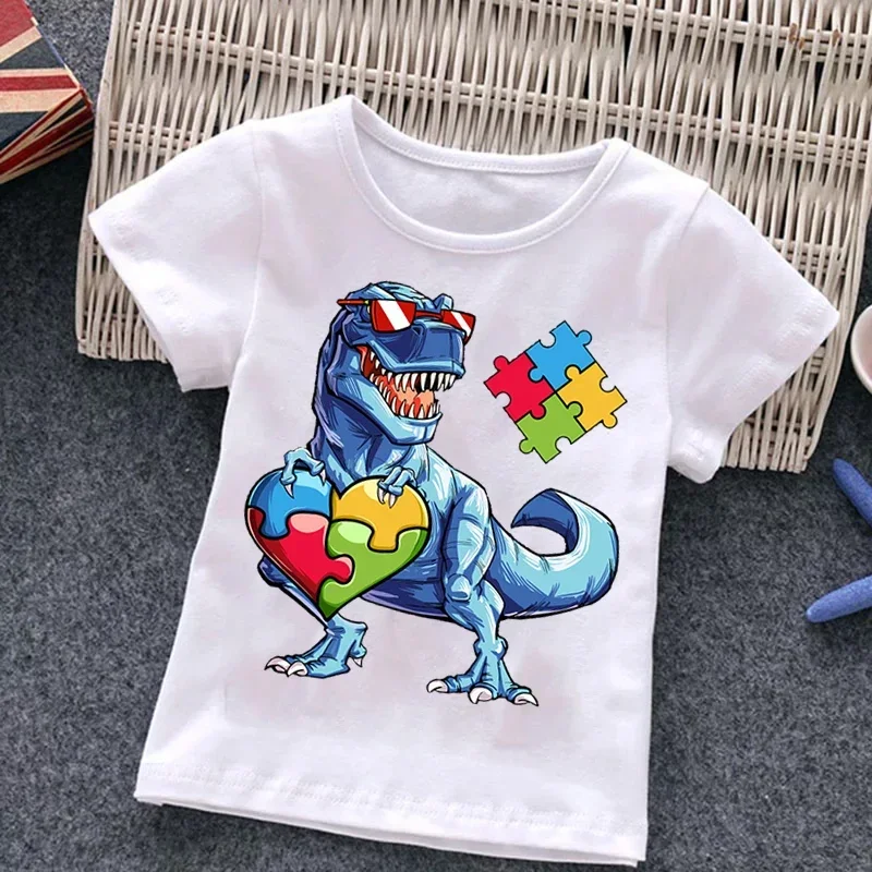 Cartoon Puzzle T-Shirt Autismus Kinder Junge Tops niedlichen Baby M...