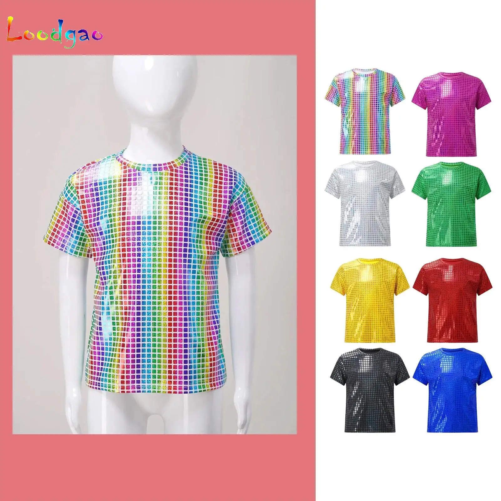 Kinder T-shirts Kurzarm T-shirt Glänzende Pailletten Plaid Tops Streetwear Mädchen Junge J...