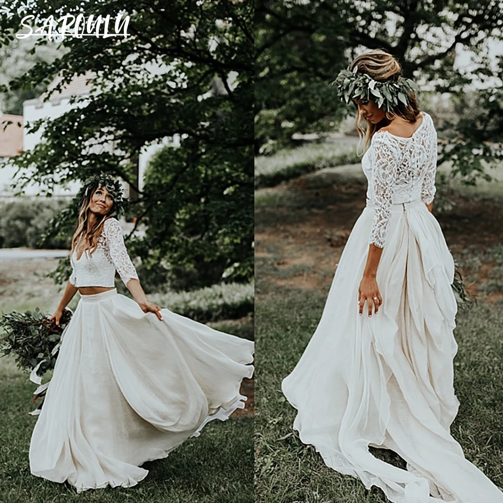 RODDRSYA Spitze Kurzen Ärmeln Hochzeit Kleid Braut Böhmis...