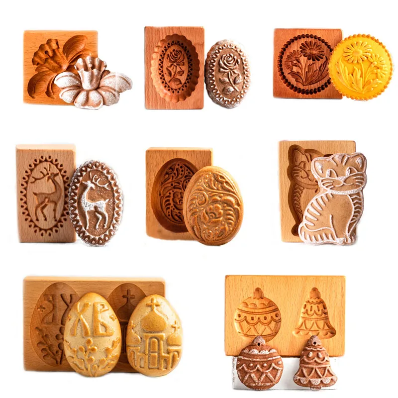 Keksform aus Holz, Kaninchenformen für Kekse, Lebkuchen, Kürbis, Rentier, 3D-Ausstechforme...