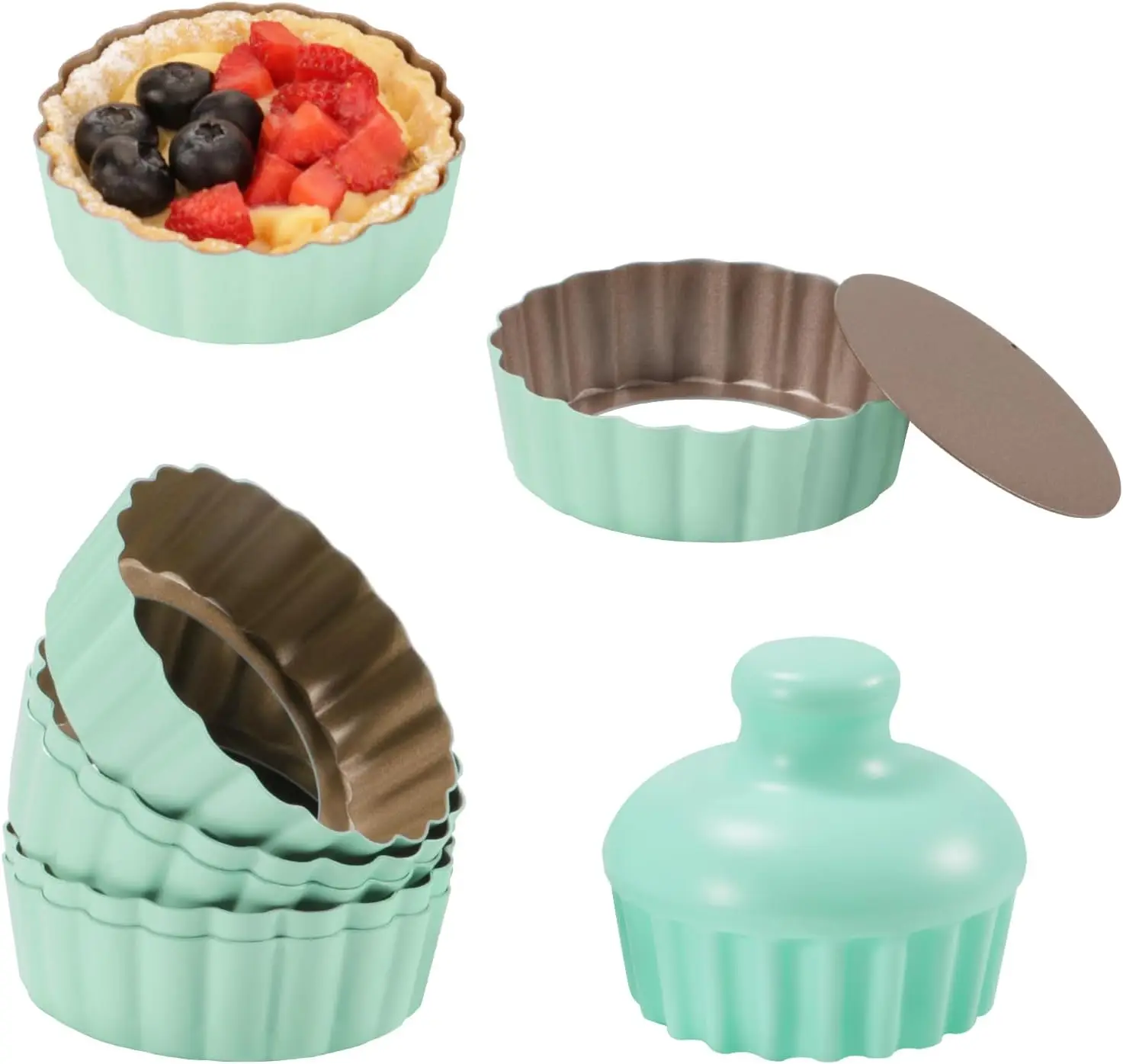 6Pcs Carbon Stahl Ei Torte Formen Mini Torte Pie Pan Geriffelte Design Cupcake Backform Nicht-Stick ...