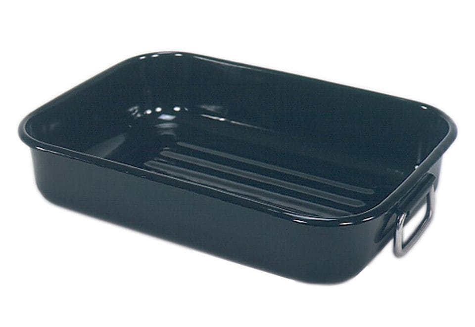 Grill- und Auflaufform - emailliert, Krüger. Schwarz glänzend emailliert mit Bodenrillen u...