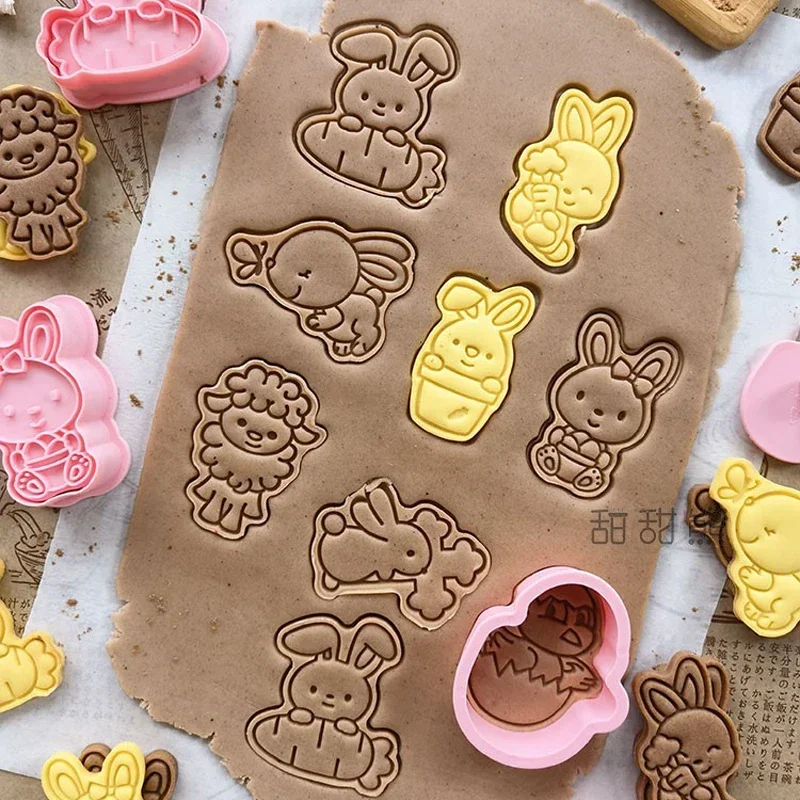 8 teile/satz Cartoon Ostern Keks Präge form Kaninchen Lamm Küken Keks Cutter Tier Muster K...