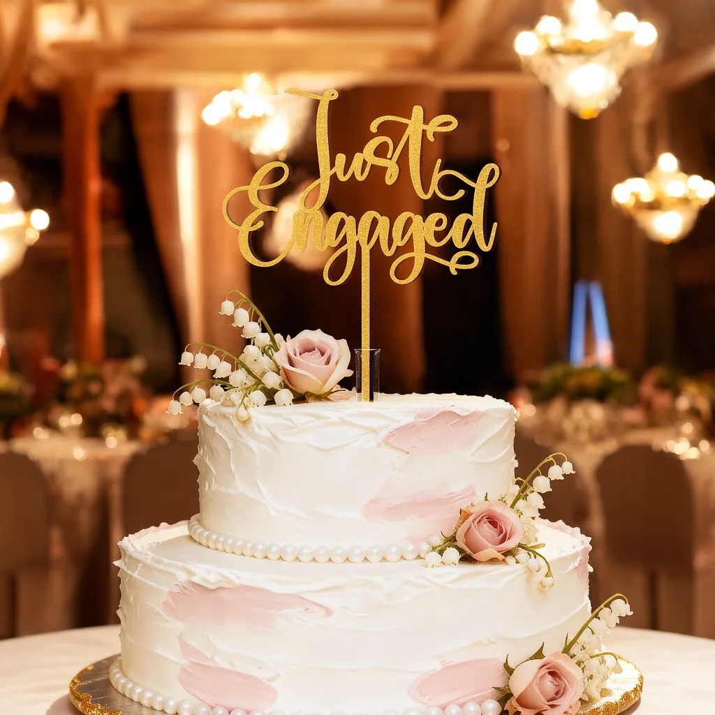 Just Engaged Cake Topper Gold – 15,8 cm Hochzeits- und Verlobungsdekoration, doppelseitig, 4 m...