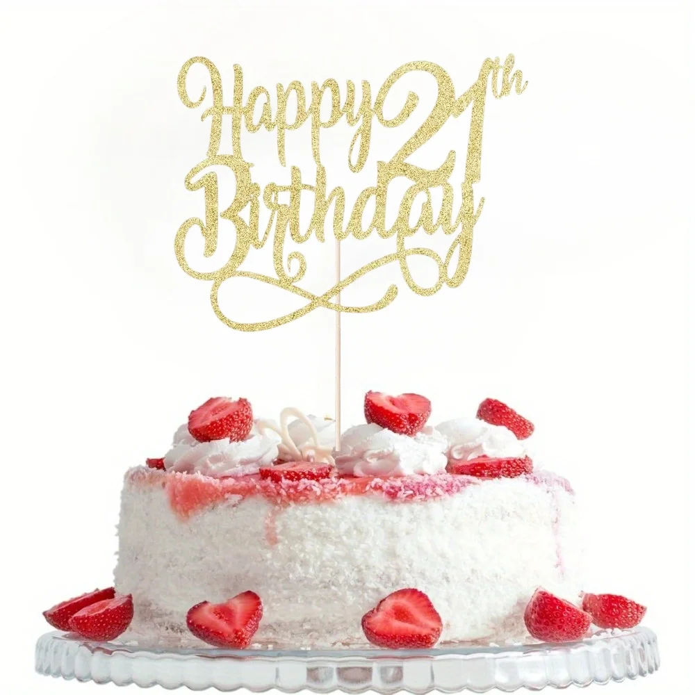 1 Stück Goldglitzer Happy 21th Birthday Cake Topper, Prost auf...