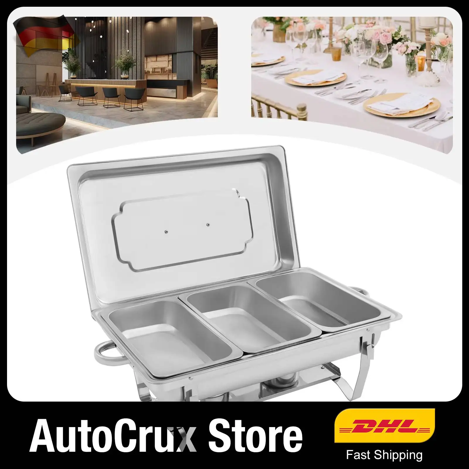 Zusammenklappbarer Chafing Dish, 3-Fach-Lebensmittelwärmerpfanne aus 410-Edelstahl