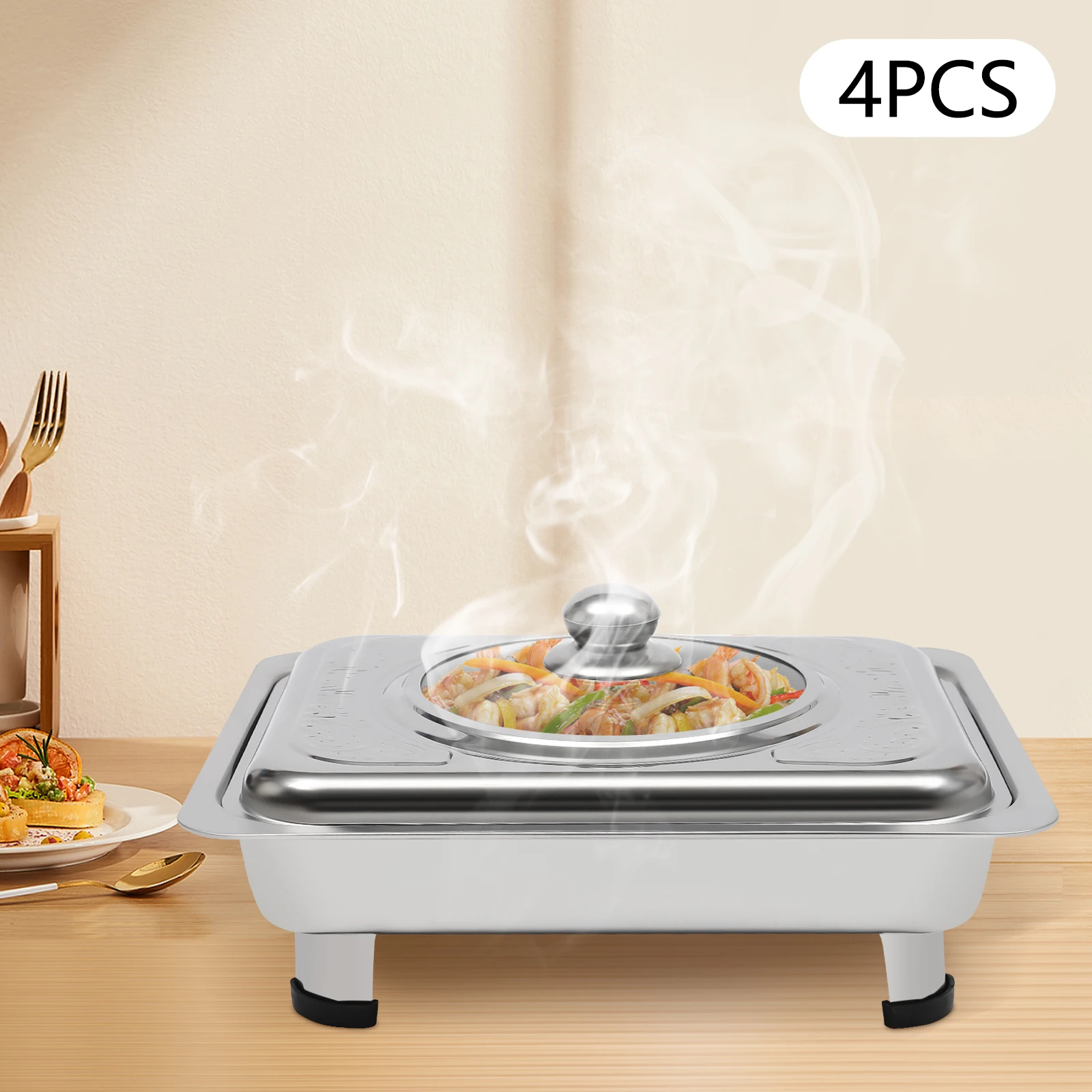 4 Stück Chafer-Pfanne aus Edelstahl mit Deckel, Chafing-Tablet...