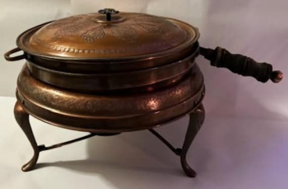 Vintage große nahöstliche Kupfer Chafing Dish mit St&aum...