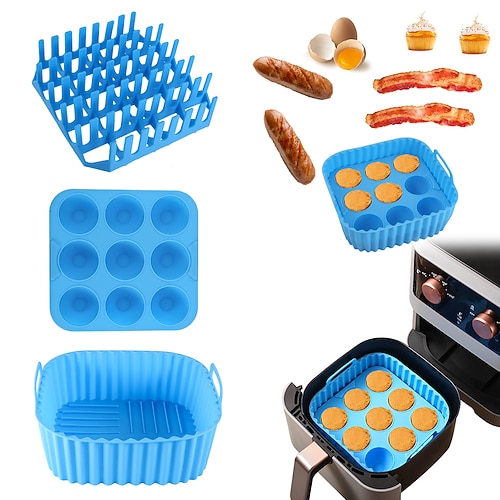 3-teiliges Set wiederverwendbarer Silikon-Luftfritteusen-Einlagen, ...
