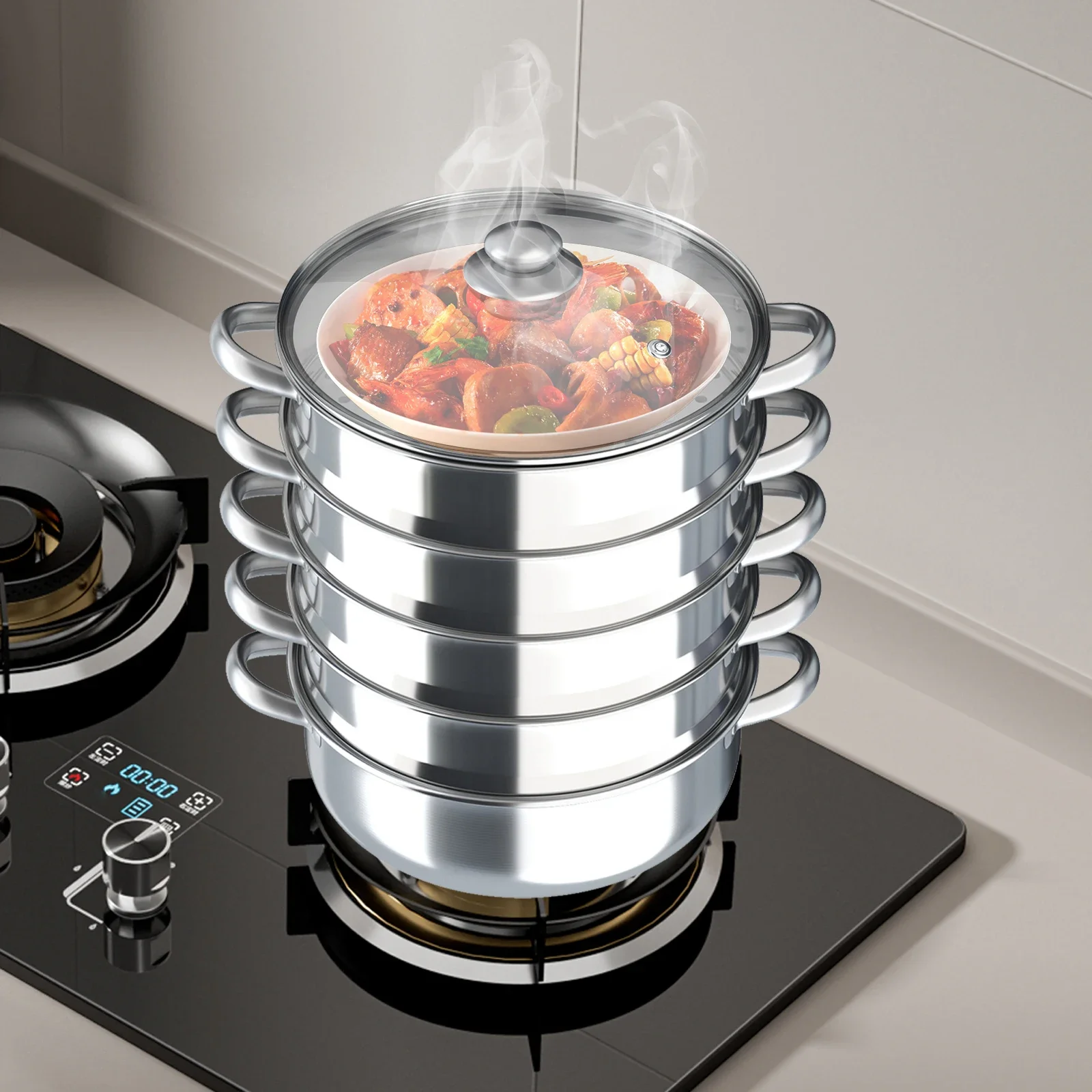 5-stufiger Topf aus Edelstahl 304, stapelbar, mit Deckel, 9 l, Univ...