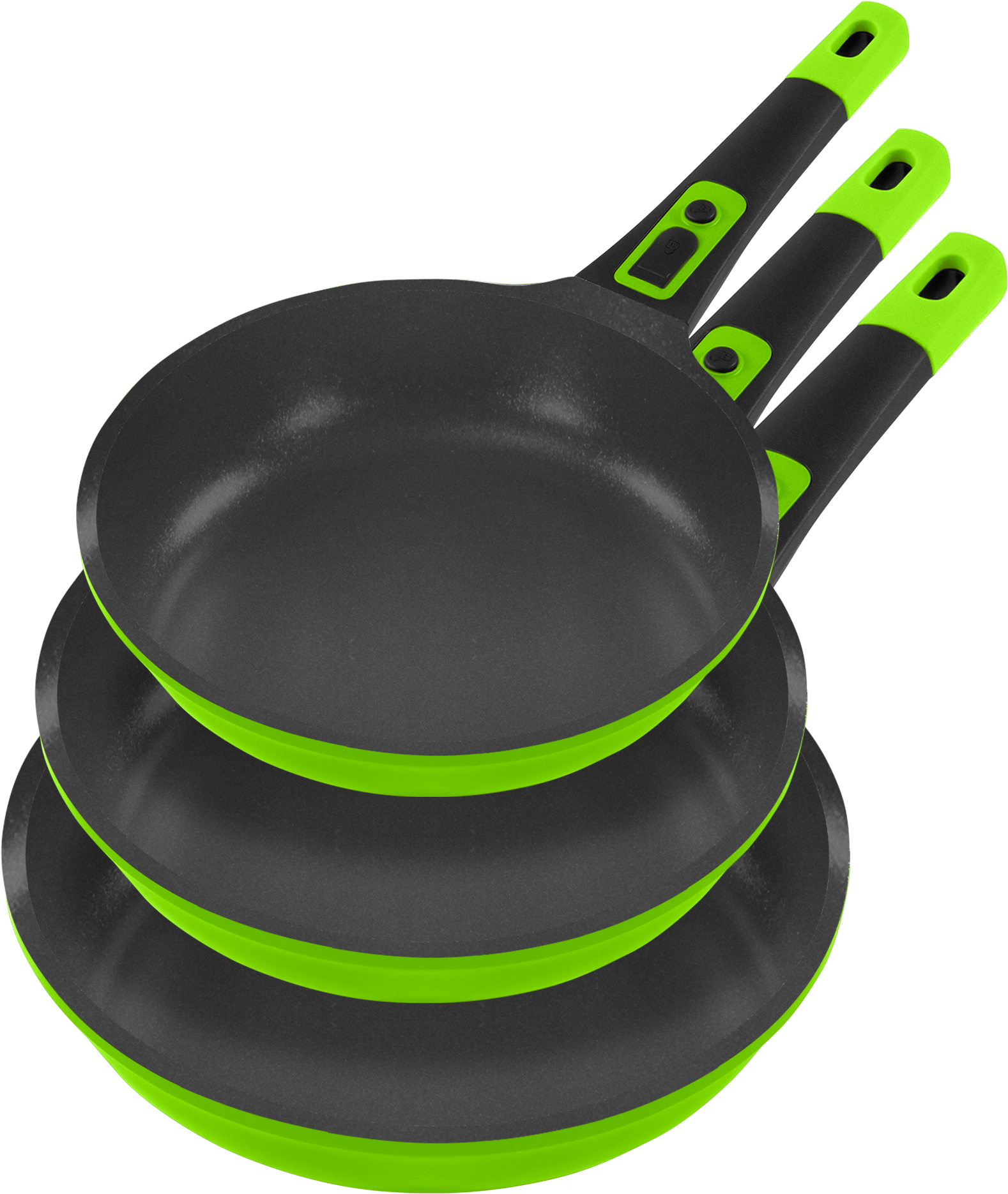 Das 3-teilige Bratpfannen-Set KING® CLICK-GRIP beinhaltet drei flache Bratpfannen (Ø 20, ...