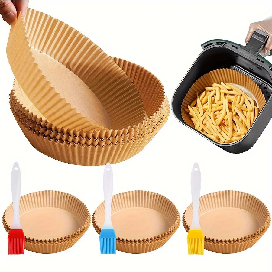 50/100 Stück Luftfritteusen-Papiereinlagen mit Ölpinsel, ...