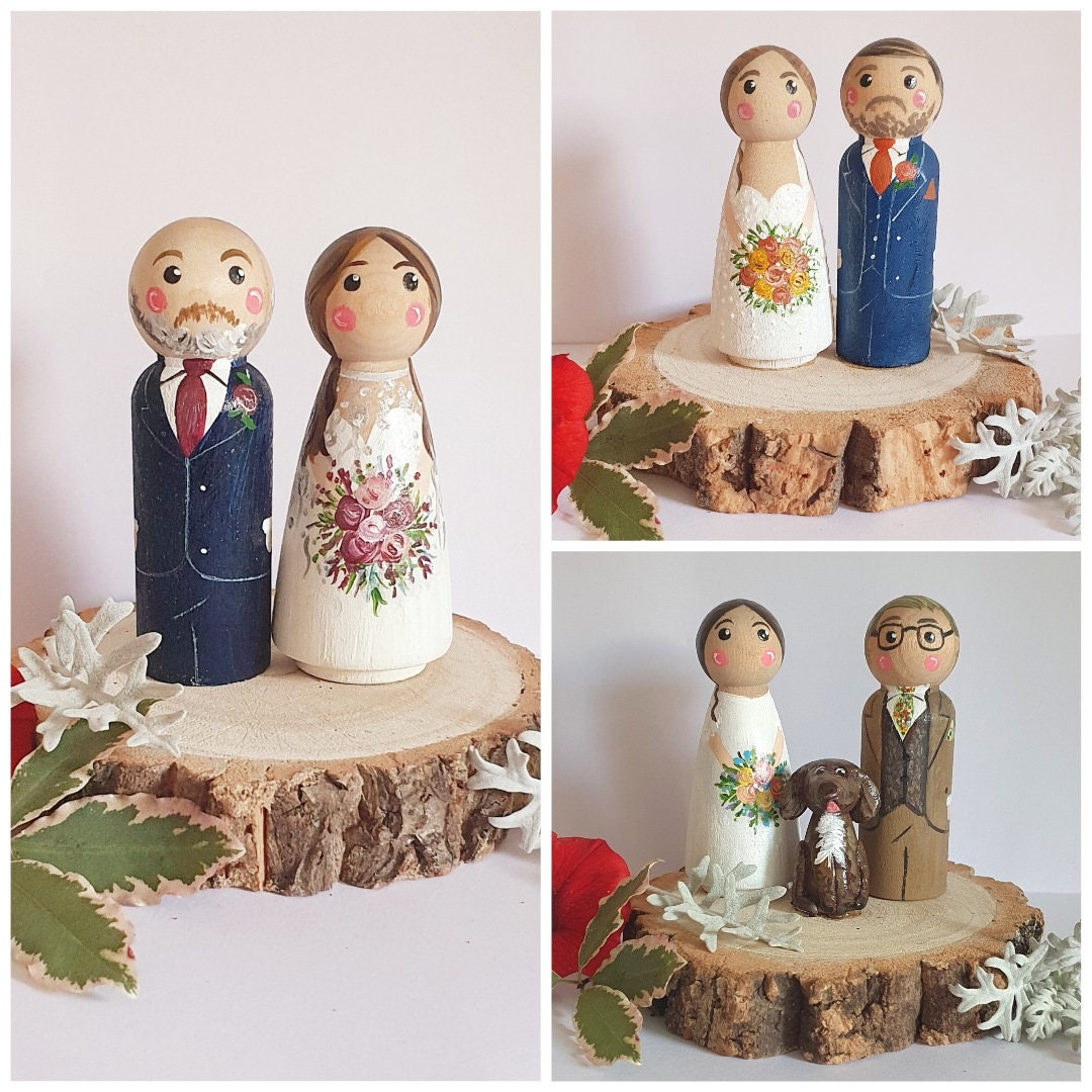 Bride and groom wedding cake topper peg doll cake topper custom bri...