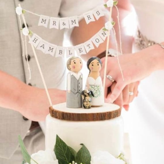 Bride and groom wedding cake topper personalised cake topper hand p...