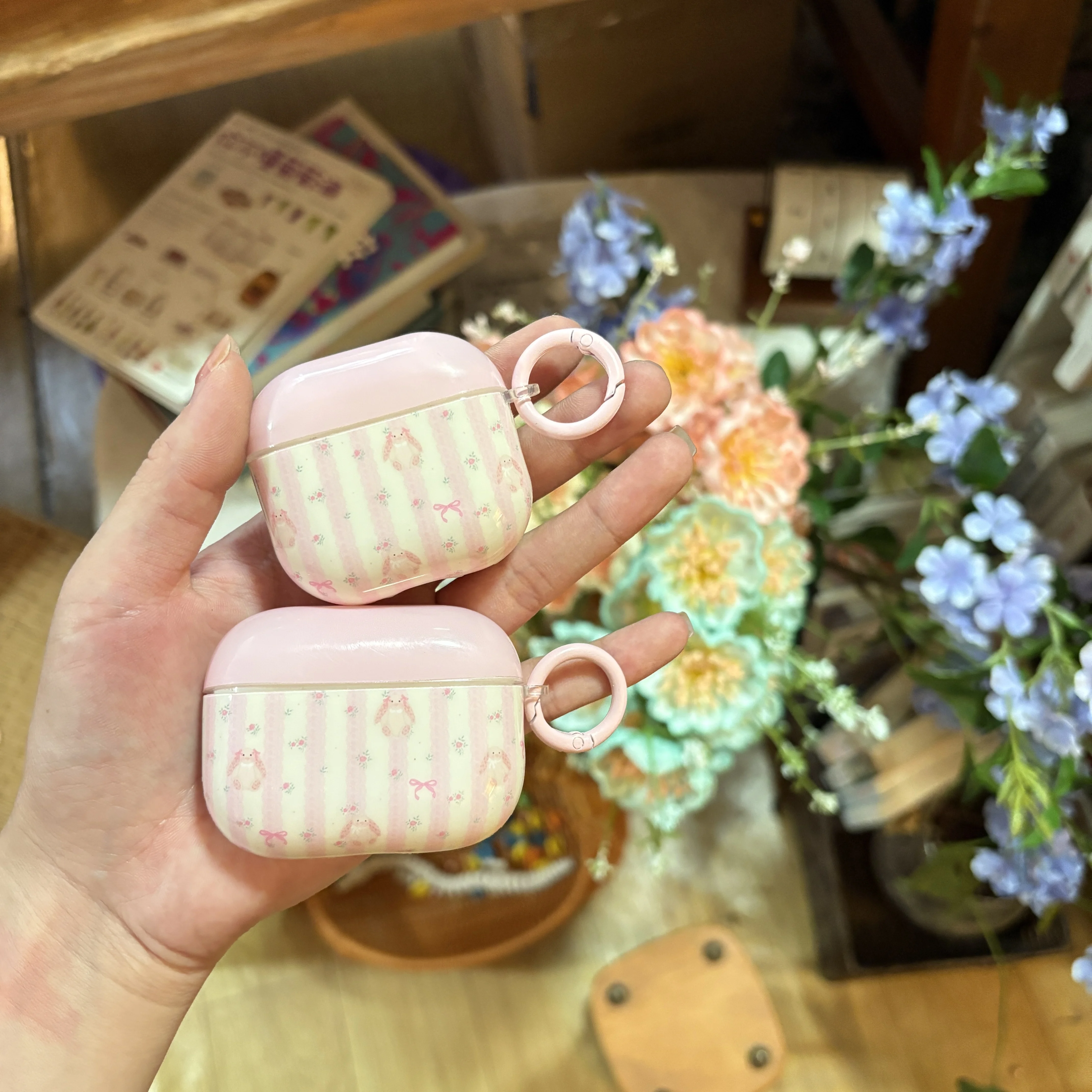 Wunderschöne süße rosa Kaninchen-Kopfhörerhülle mit Blumenmuster, Schleife...