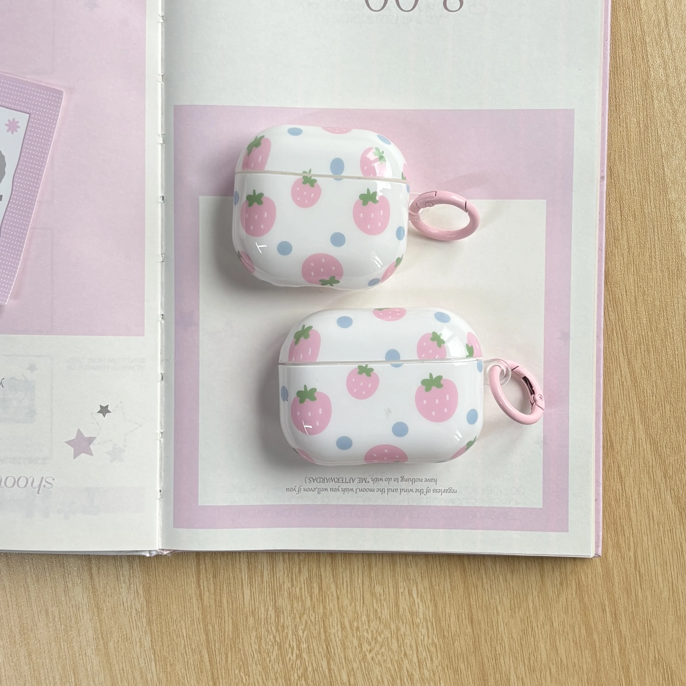 Schicke, süße, rosa, erdbeerblaue Polka-Dot-Muster, glänzend weiße Kopfhö...