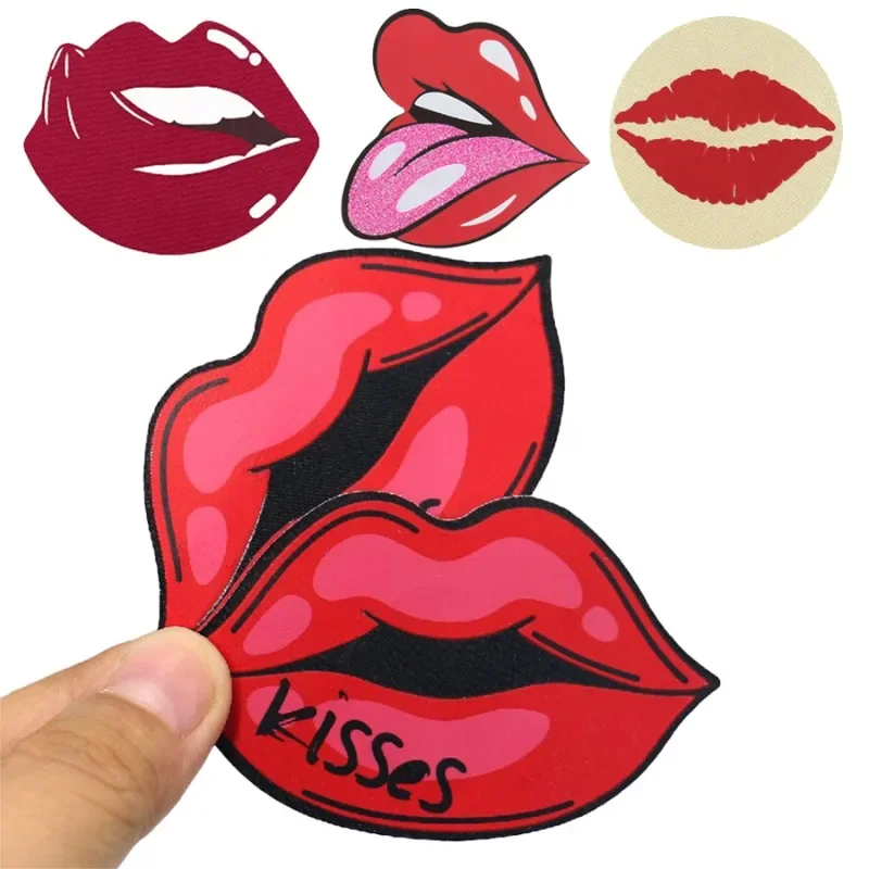 8 Stück KISS Red Lip Print Shape Damen selbstklebende Einweg-Satin-Nippelabdeckung Brustpasties...