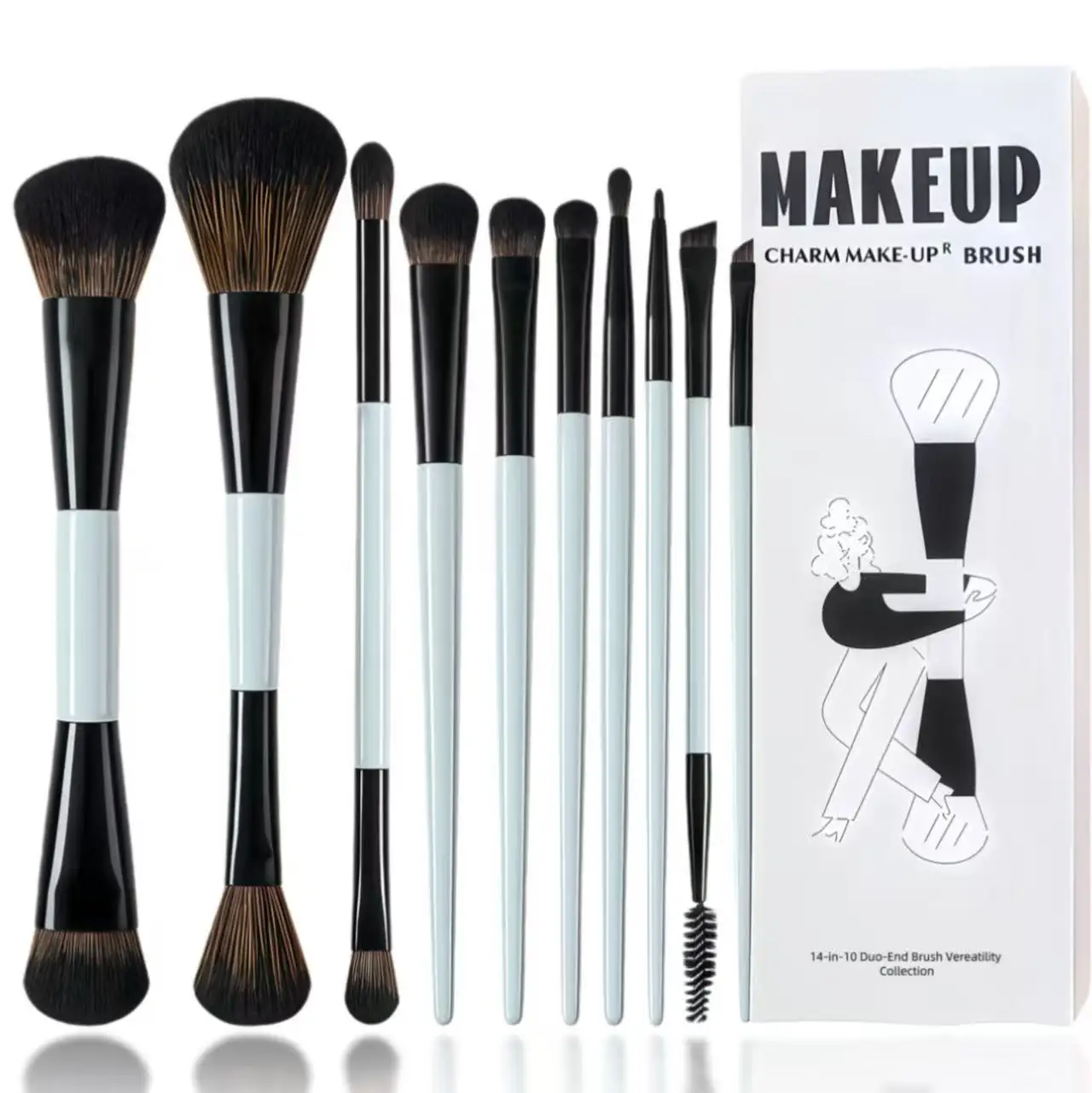 10-teiliges Make-up-Pinsel-Set in Schwarz und Cyan-Grün 14-in-...