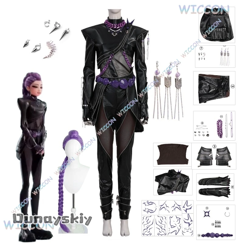 {Anna zhang Online}Kpop Demons Hunters Rumi Cosplay Kostüm Perücke Schwarzes Leder Kampfan...