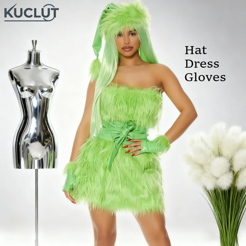 Weihnachten Grünhaariges Monster Cosplay Kostüm Grinch Uniform Frauen Grüner Anzug Ro...
