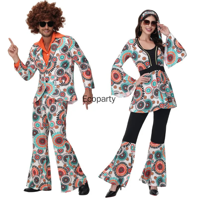 Halloween Party Retro 70er 80er Disco Erwachsene Paare Hippie Kostüme Frauen Männlich Rock...