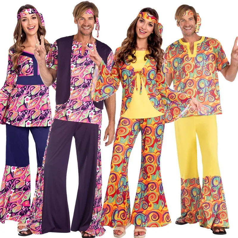Halloween Paare Hippie Kostüme für Frauen Männlich Vintage 70er 80er Rock Disco Cospl...