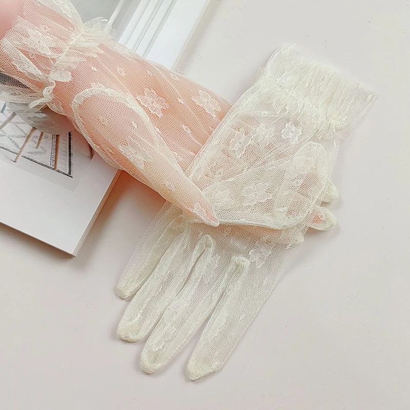 Koreanische weiße hohle Blume Spitze Handschuhe sexy Mesh kur...