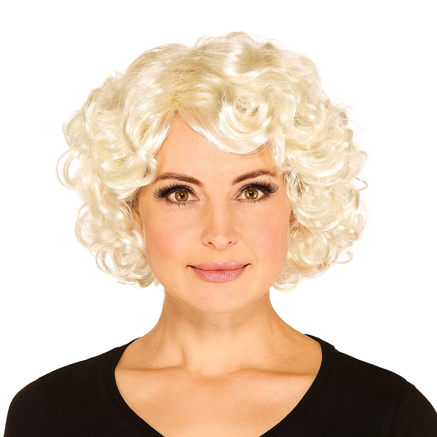 Lockenperücke Film-Ikone – die blonde Lockenperücke mit Pony und toupiertem Hinterko...