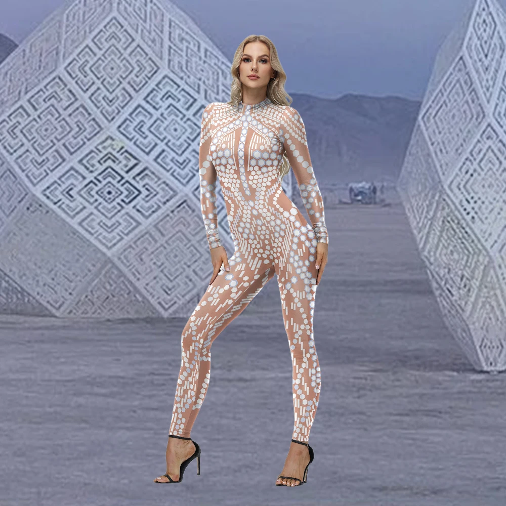 Burning Man Overalls Frauen Cosplay Kostüm Erwachsene Zentai 3D Druck Perle Muster Bodys Lange ...
