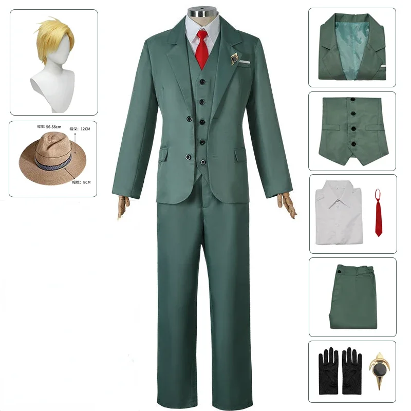 ANIMECC Loid Forger Cosplay Kostüm Perücke Hut Hellgrüner Anzug Twilight Outfit Anime...