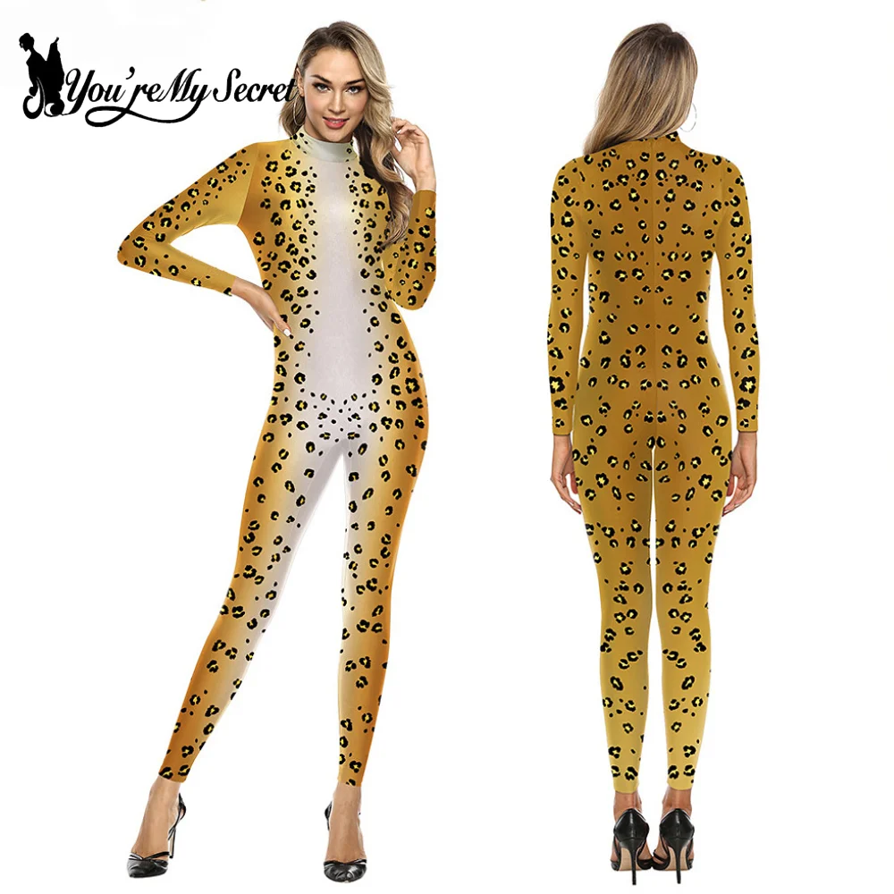 Halloween Cosplay Kostüm für Frauen Tier Leopard gedruckt elastischen Body Stram pler Part...