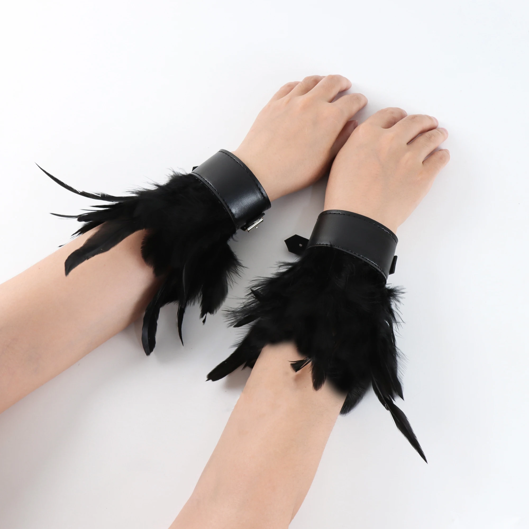 Punk Gothic Handschuhe Feder Handgelenk Manschette Karneval Bühne Show Showgirl Natürliche...