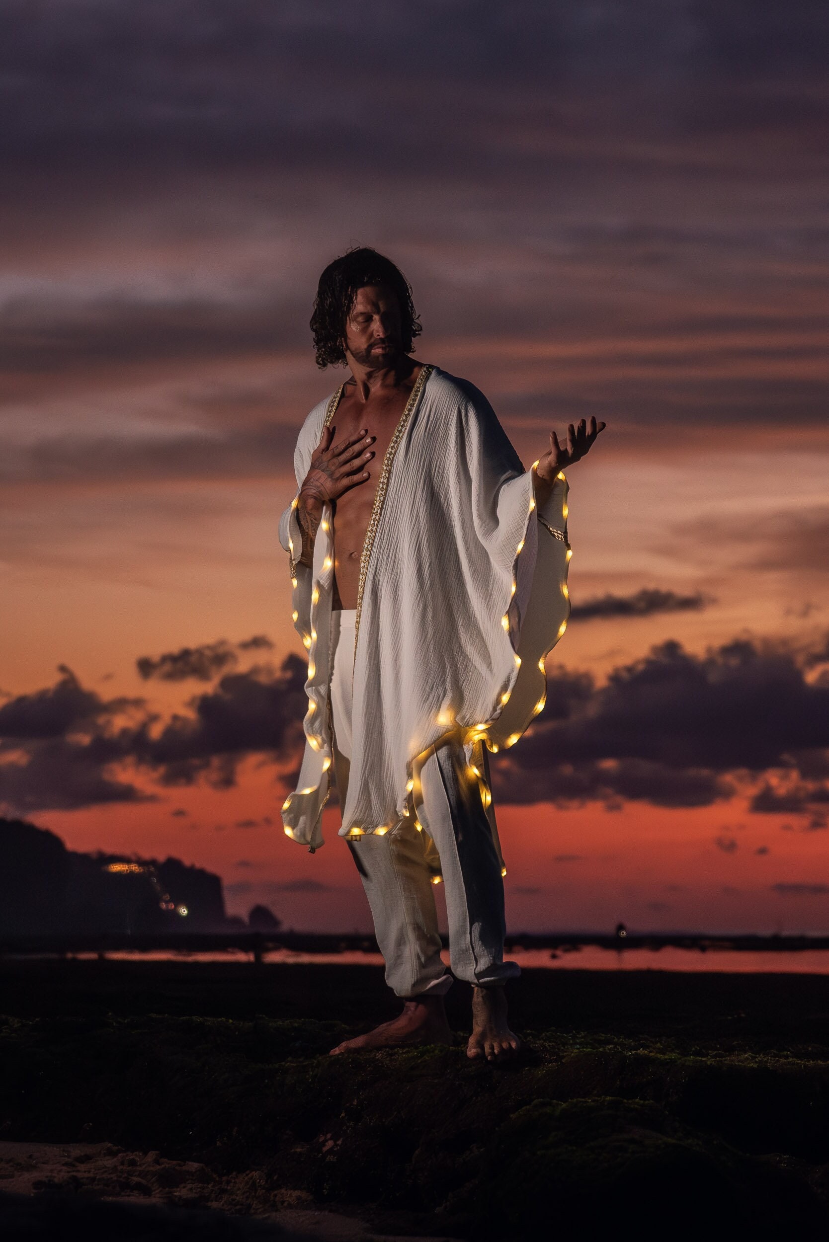 LED Kaftan (Weiß / Gold) - Light Up Cotton Ceremony Festival ...