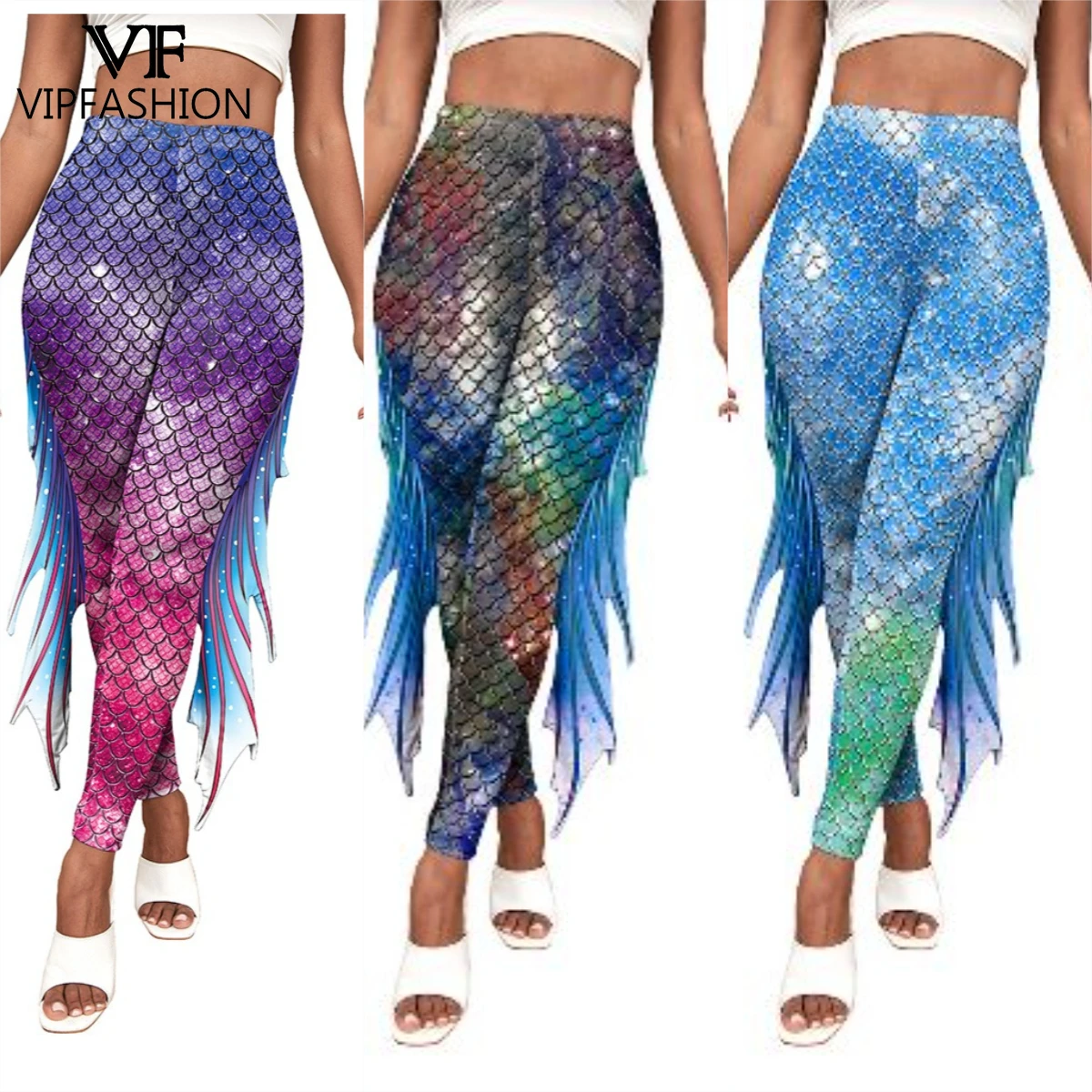 VIP FASHION Damen-Leggings mit Meerjungfrau-Skala-Druck, bunter Far...