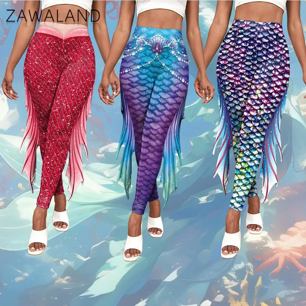 Lustige Meerjungfrau Cosplay Kostüme Sexy Hosen Karneval Party Farbe Fisch Skala 3D Druck Hosen...
