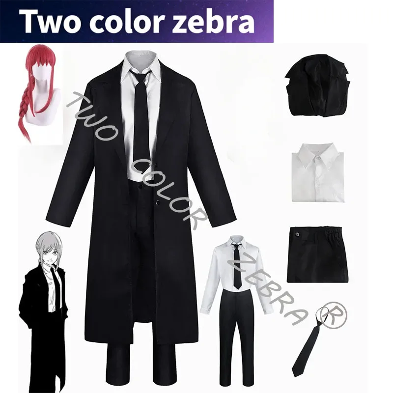 Anime Kettensäge Mann Makima Cosplay Kostüm Schwarz Graben Shirt Krawatte Hosen Makima Per...