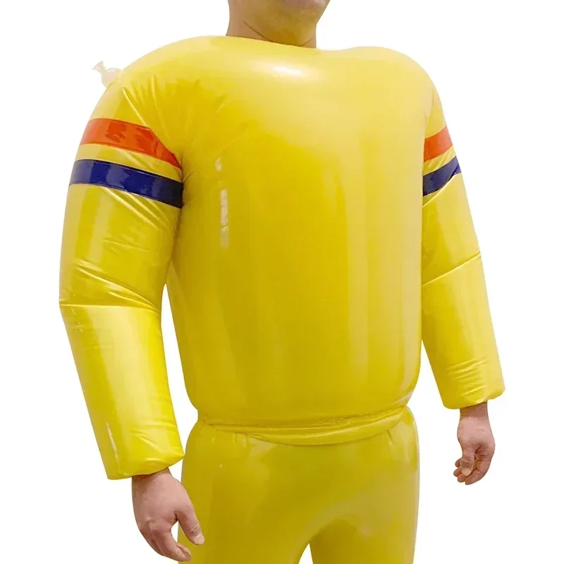 100 % Gummi Gelbes aufblasbares Outfit Latexhemd Handgefertigte Kostüme 0,4 mm S-XXL