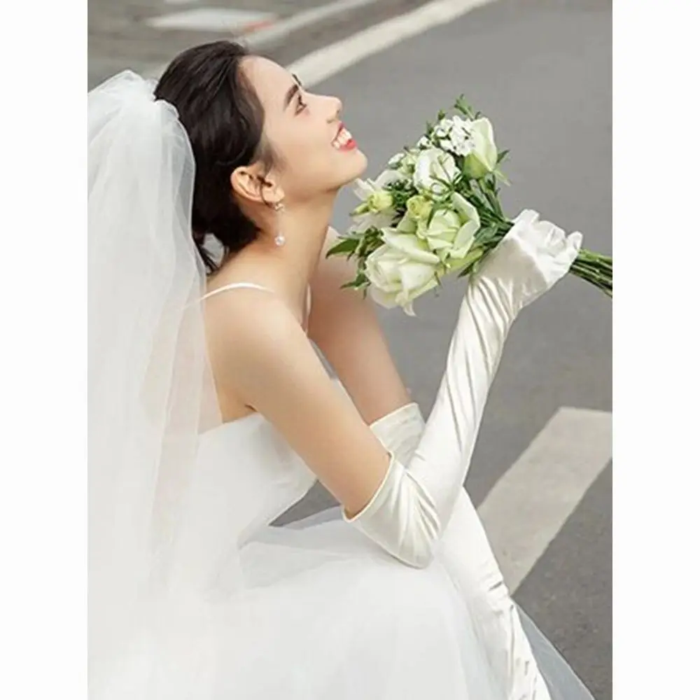 Einfache Satin-Sommerhandschuhe, Hochzeit, Abendessen, Kleid, Accessoires, französischer Stil, ...