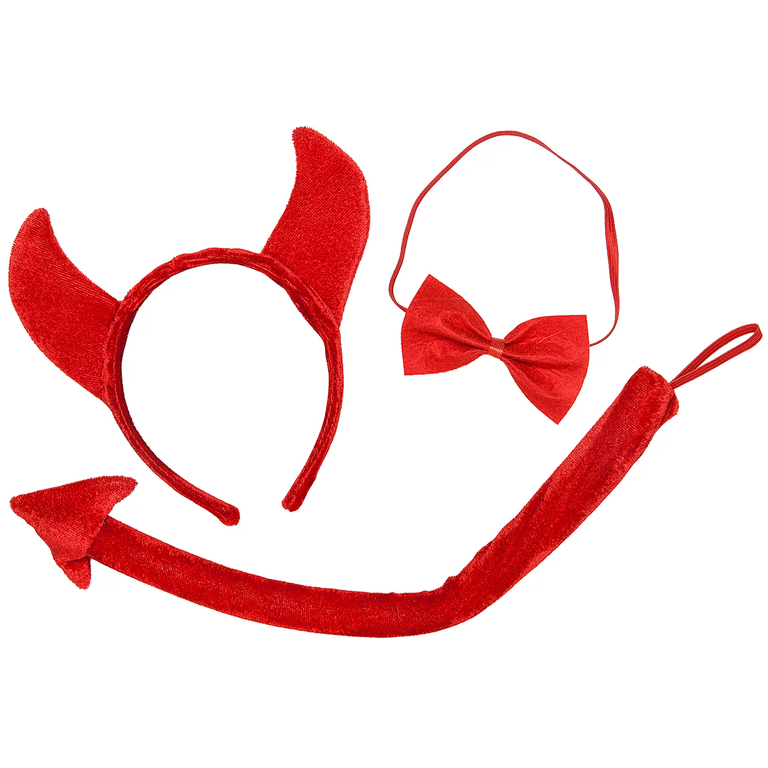 Kinder-Set Teufel – verwandeln Sie Ihr Kind mit Hörnern, Fliege und Teufelsschwanz in ein...