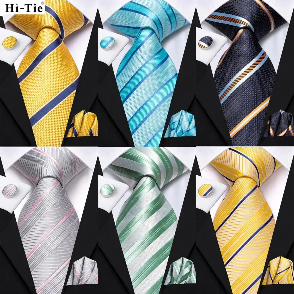 Hi-Tie Herrenmode, gestreift, marineblau, Krawatte, Einstecktuch, Manschettenknöpfe für Sm...
