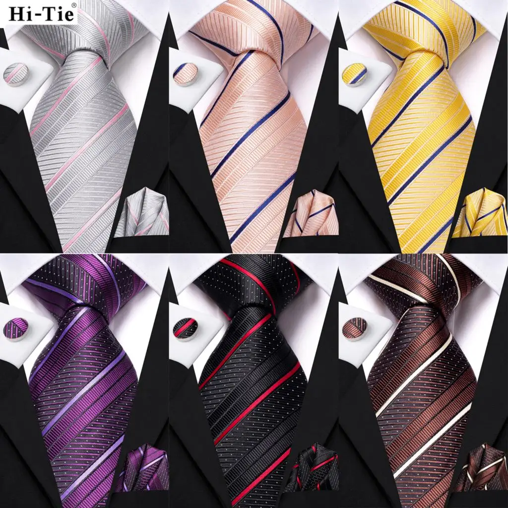Hi-Tie gestreift schwarz rot Herrenmode Krawatte Taschentuch Manschettenknöpfe für Smoking...