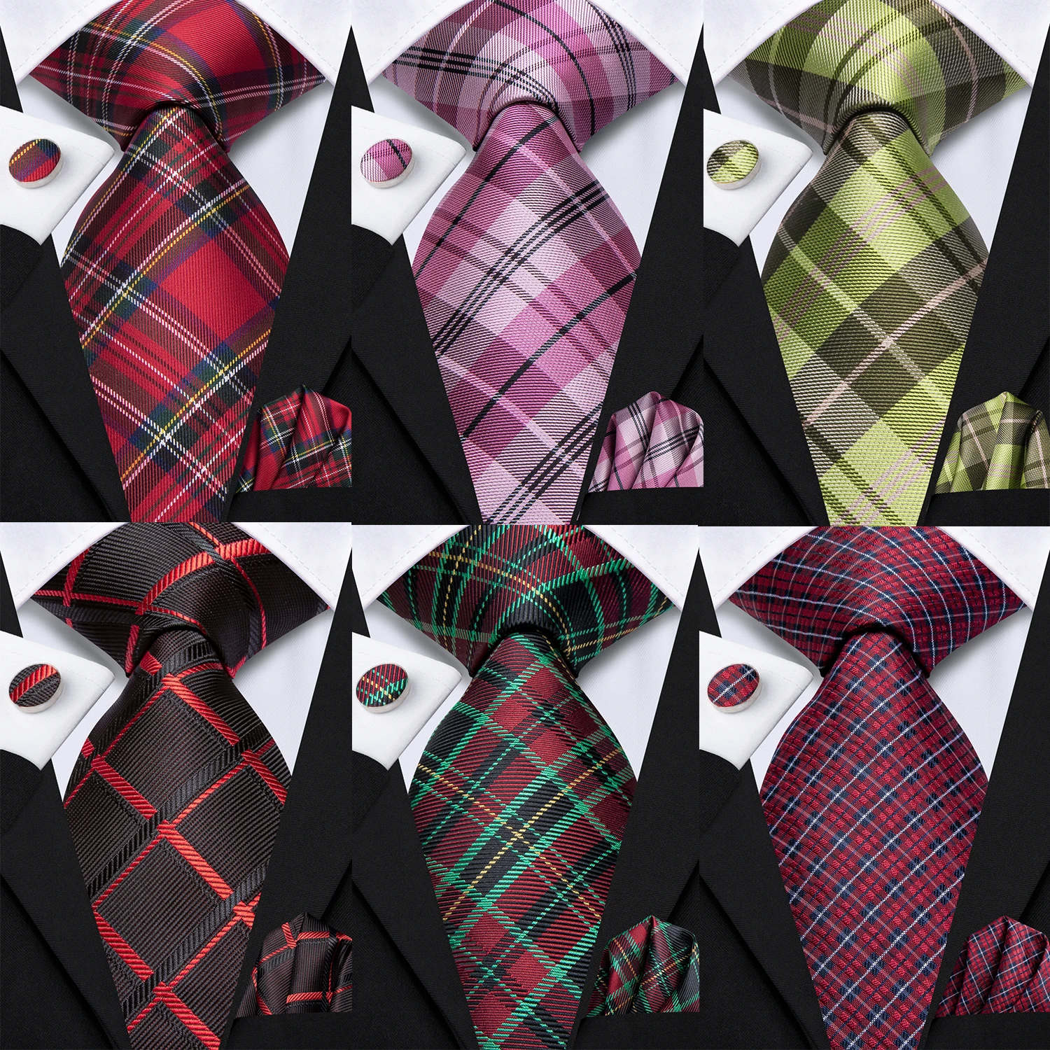 Hi-Tie Rose Pink Karos Plaids Herrenmode Krawatte Taschentuch Mansc...