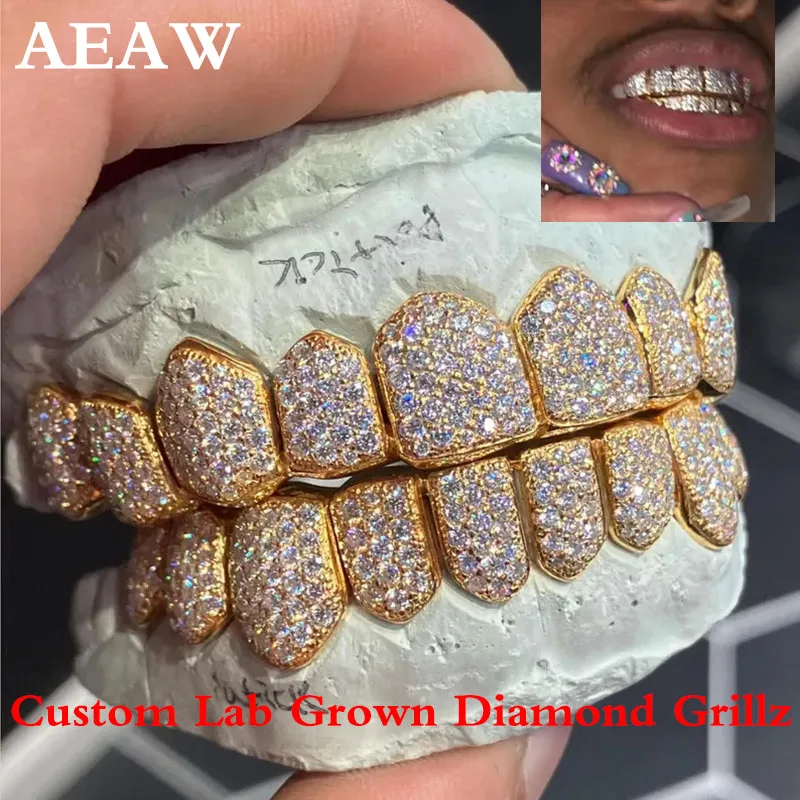 Custom Lab Grown Diamond HPHT Grillz 8 oben und 8 unten Hip Hop 14 ...